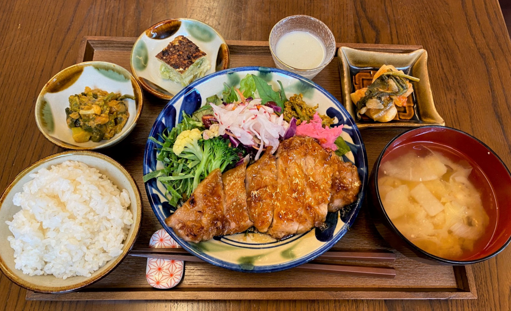 Our signature veggie plate highlights locally sourced, pesticide-free, and reduced-pesticide vegetables, delivered fresh from nearby farms. Each dish is a celebration of seasonal colors and flavors. We use nutrient-rich, half-polished brown rice and additive-free miso, ensuring that every bite is filled with the gentle goodness of nature.